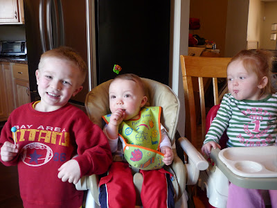 Aaron ate his first lollipop with his cousins, Brett and Claire, this past weekend. He LOVED it! We had a great visit with my mom, dad, Amy, Brett, and Claire! Thanks for coming to visit us, guys!